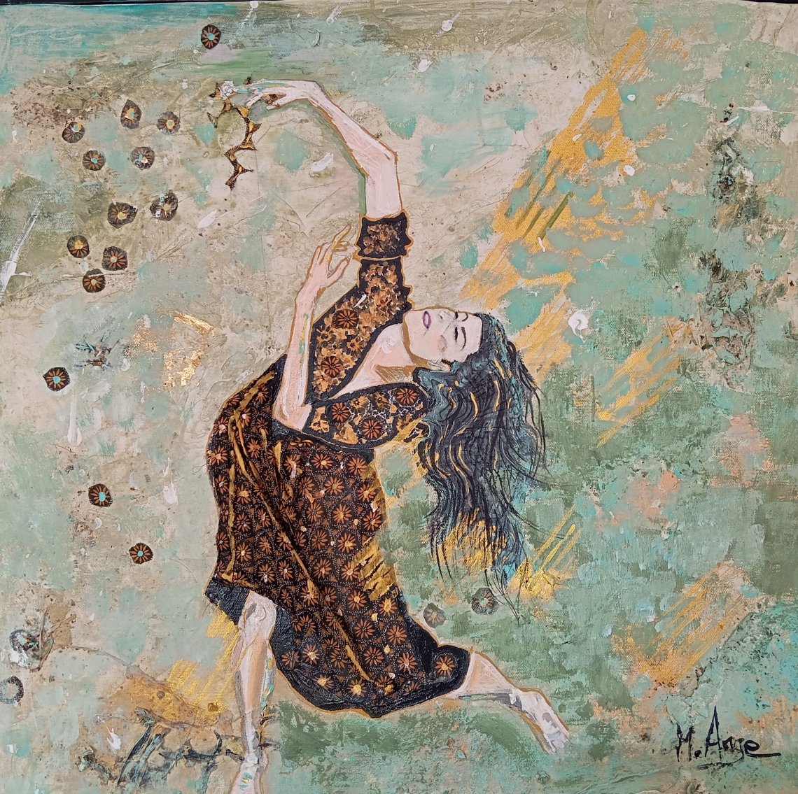 Cette toile représente une danseuse , dansant sur le sable, transportant avec elle et répandant toute son énergie.
