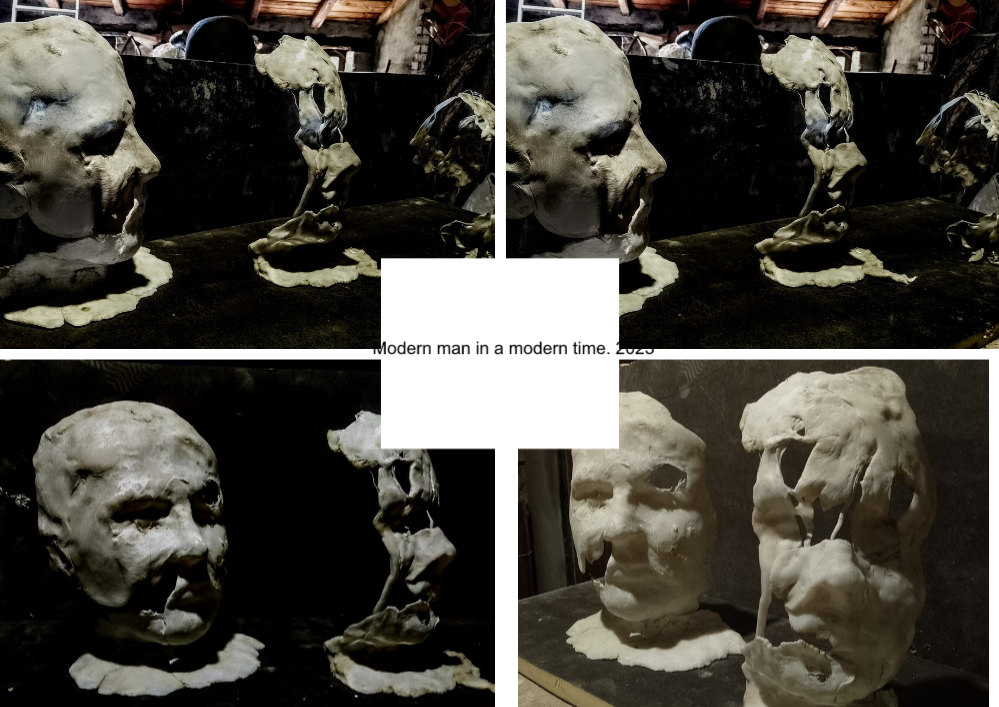 Una riflessione sulla deformità dell' uomo moderno....sulla liquefazione dei valori che compongono la mostra società e la nostra cultura. L' opera è composta da un volto che progressivamente si scioglie....e sciogliendosi si deforma in una specie di mostro senza volto.