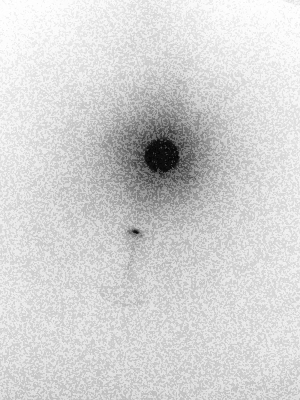 Dual presents an abstract, radical subtraction: a photograph of the sun is stripped of its color, of its warmth, of its context. What remains is a stark black disc—light’s origin turned into shadow—accompanied by a smaller twin, a ghostly echo produced by the camera’s lens. This double presence reflects the inherent contrast at the heart of light itself: wave and particle, visibility and invisibility, force and fragility. In this distilled composition, contrast is not only visual, but ontological—a meditation on duality as the structure of reality.