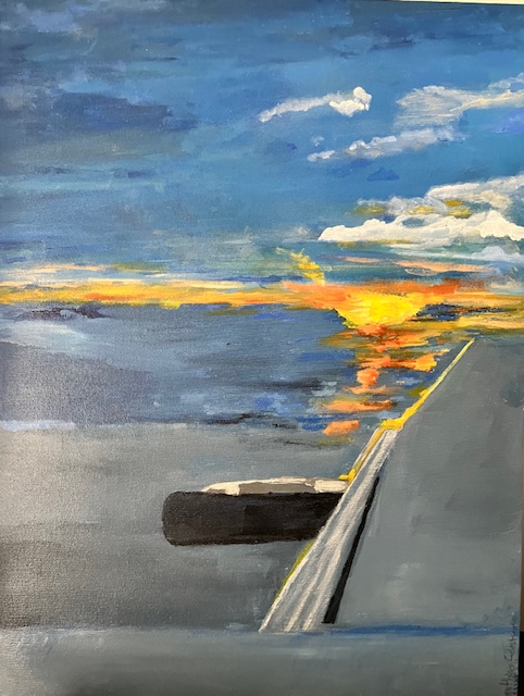 Artwork title : Sunrise from the plane, Acrylic, 45.7 cm x 61 cm, 2024