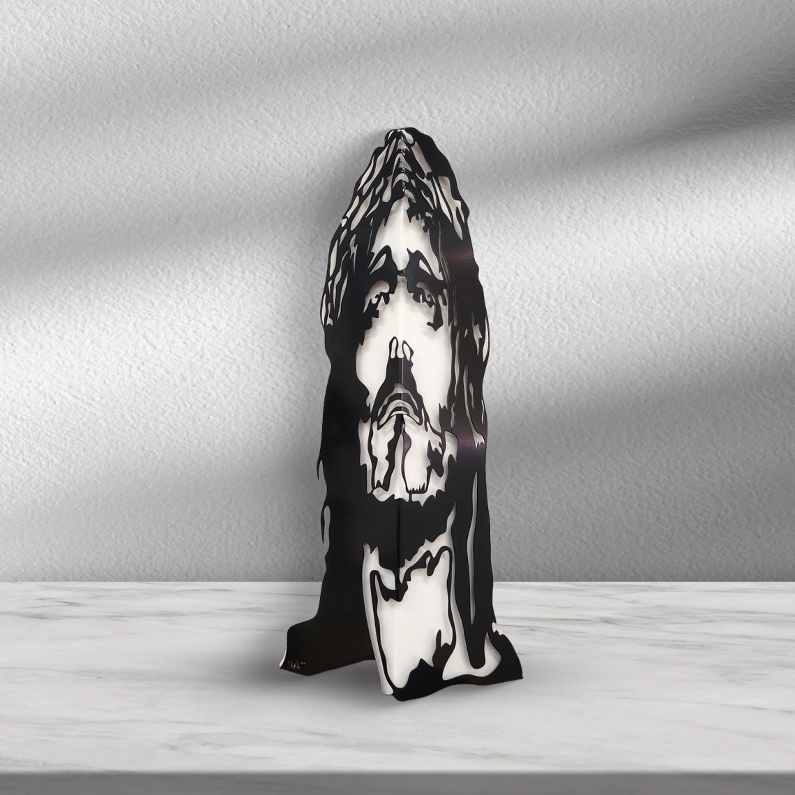 In questo ritratto il metallo si piega, non solo simbolicamente, al fine di rievocare una sensazione di passione, di sacrificio, senza mai prendere le distanze dall’inevitabile destino che lo aspetta.