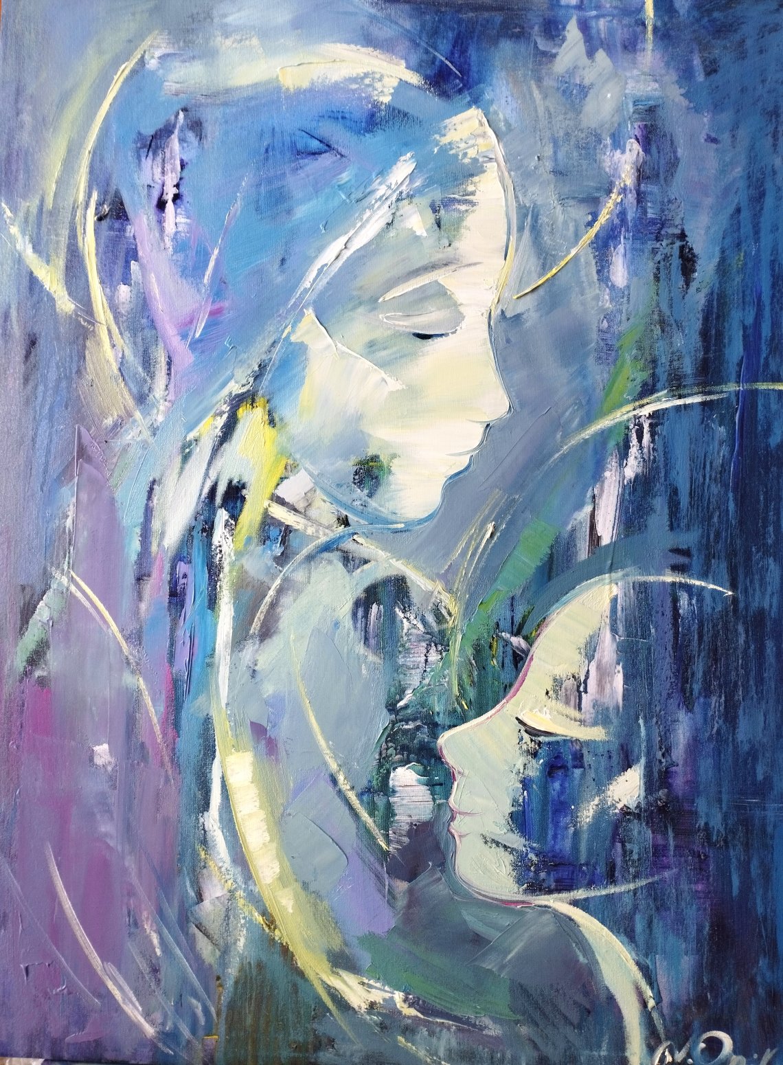 The painting is done in the style of figurative art. It is done in bright colors with elements of impressionism. Painting reveals the beauty of all women and purity. The painting is done in oil on canvas.