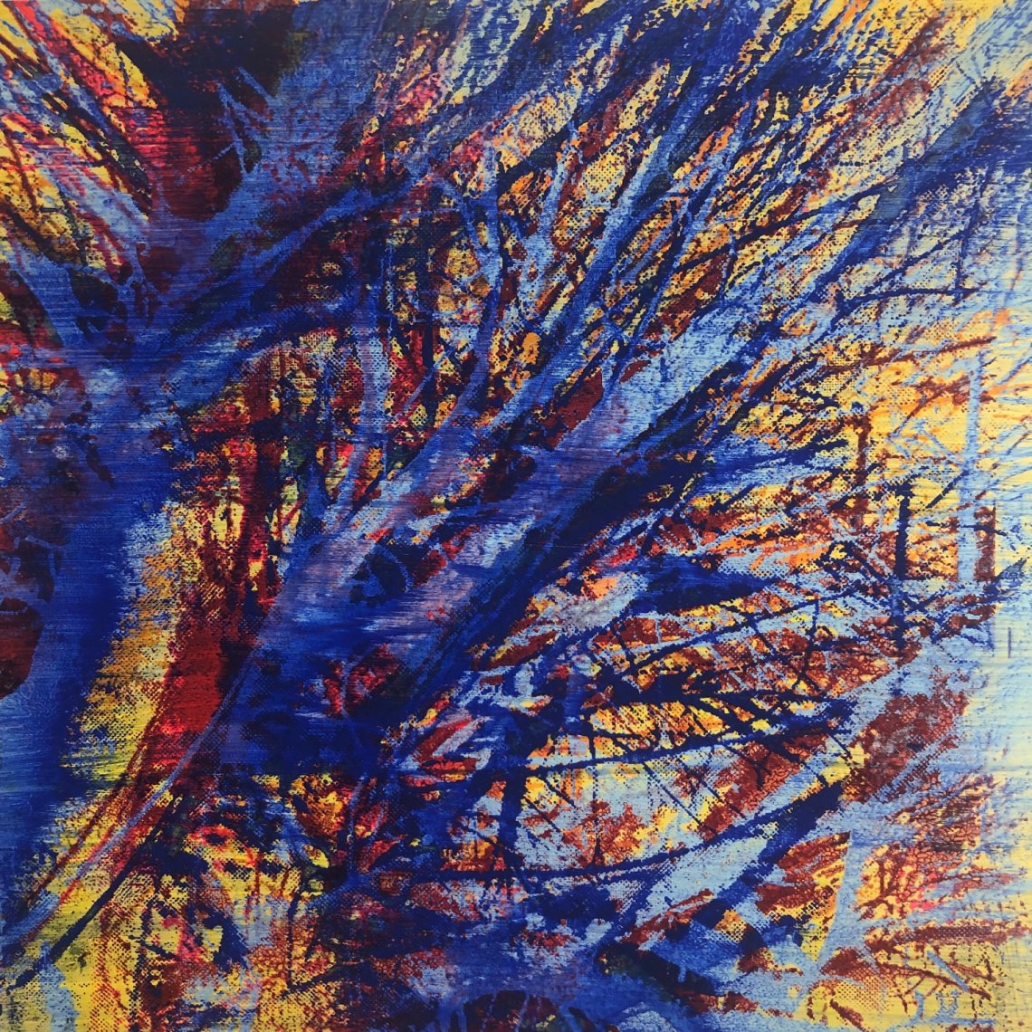 Siebdruck 30x30 cm auf Holzplatte.Das Foto dazu wurde beim spazieren im Winter gemacht. Nun ist der Baum in neuer Blüte und Farbenpracht aus dem Winterschlaf erwacht und stralt in seinen bunten Farben.