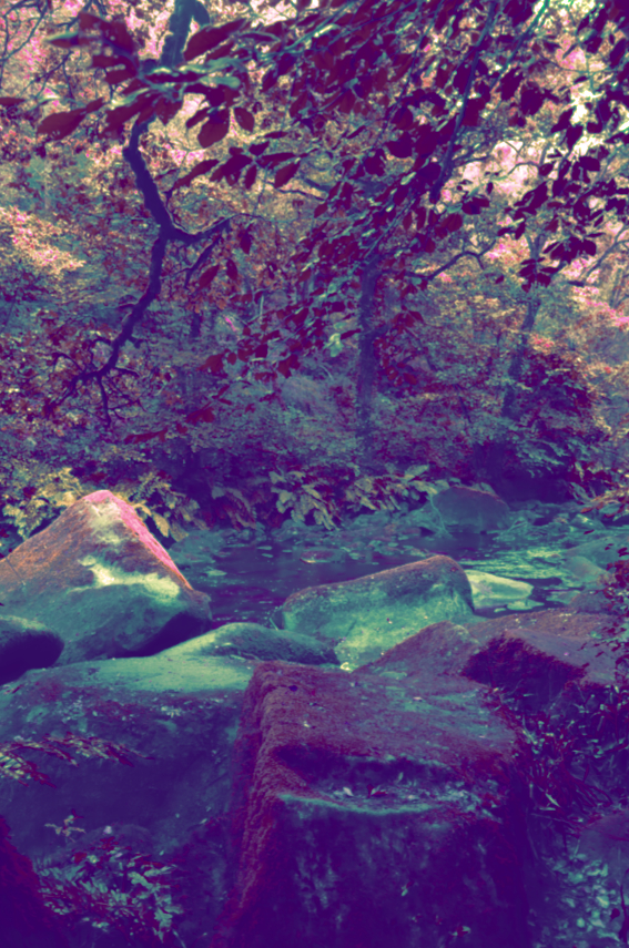Impression pigmentaire sur papier fine Art, hahnemuhle metallic, encolle sur aludibond, 40/60cm, limitée à 2 éditions. Tirée de la série „Paysages en Estampes Japonaises”, elle est inspirée de l’ambiance particulière des estampes de Hazui Kawaze. Prise le long de l’Ellé, où j’ai été attirée par la douce mélodie de l’eau qui coule…hypnotisée par la beauté des lieux, je me suis laissée porter par l’eau et j’ai longé la rivière le temps d’un instant. Plusieurs photos ont été prises lors de cette promenade. Celle-ci, ainsi que d’autres, sont à l’origine de la série de cyanotypes en grands formats „Paysages déphasés ou sur la courbe de l’oubli”, centrée sur le souvenir et la mémoire.